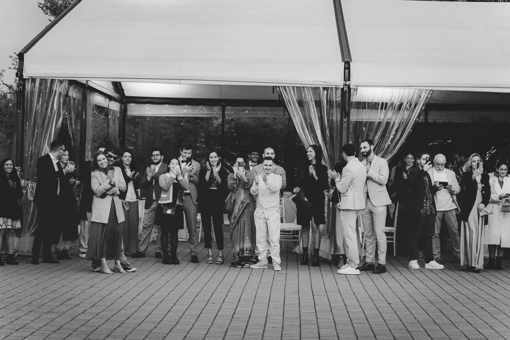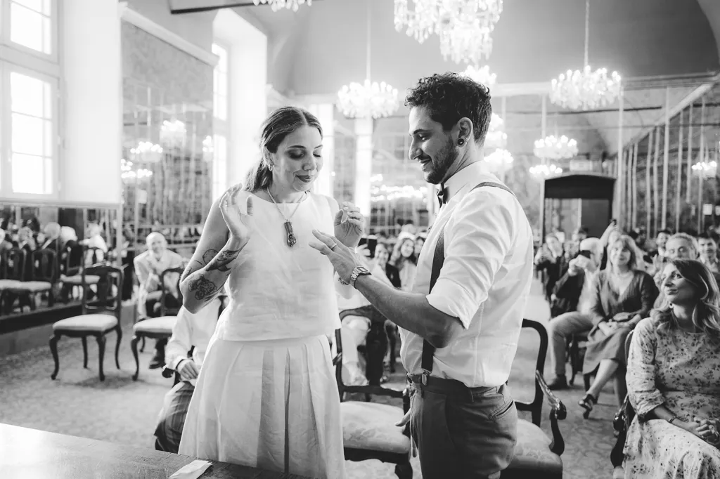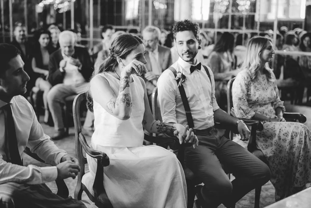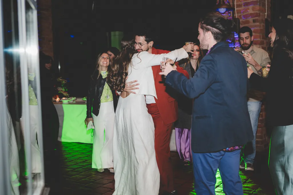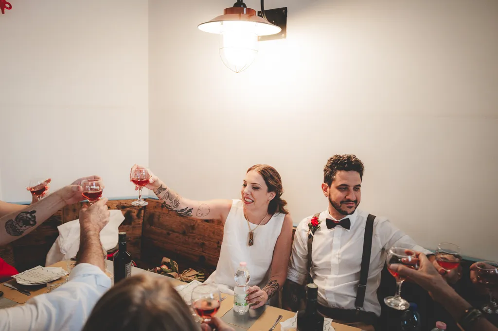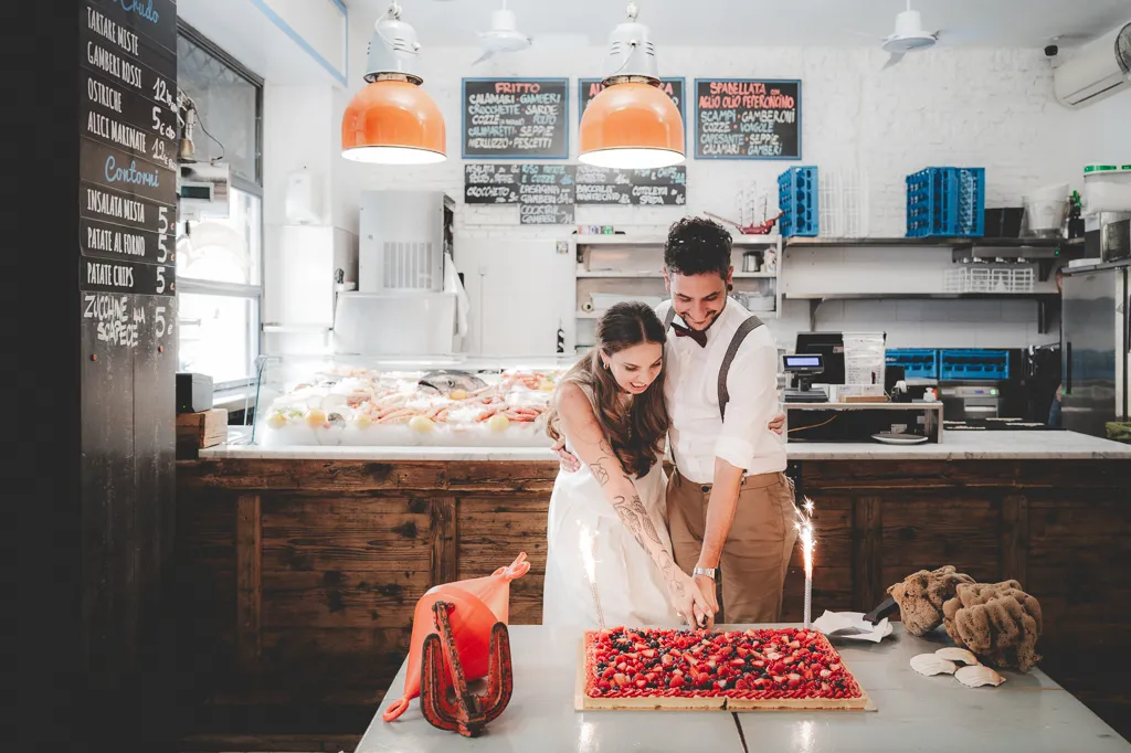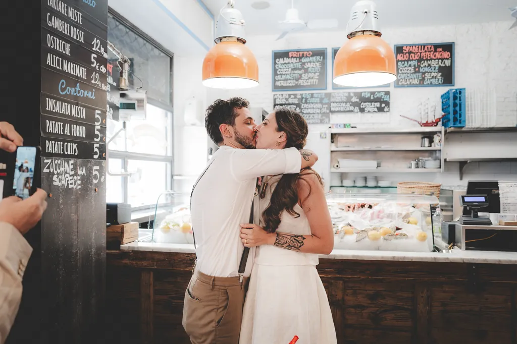 La cerimonia, con rito civile, si è svolta nella Sala degli Specchi, a Palazzo Reale, magnifico luogo accanto al Duomo. Il pranzo invece in una pescheria con cucina, si, avete letto bene, pescheria con cucina (Pescetto, li ho adorati per questo!). Ovviamente poi c’è stata una festa, la sera, presso l’Antico Borgo in Città, sempre a Milano con musica dal vivo (niente po’ po’ di meno che con I Patagarri, che se non li conoscete vi invito a cercarli).