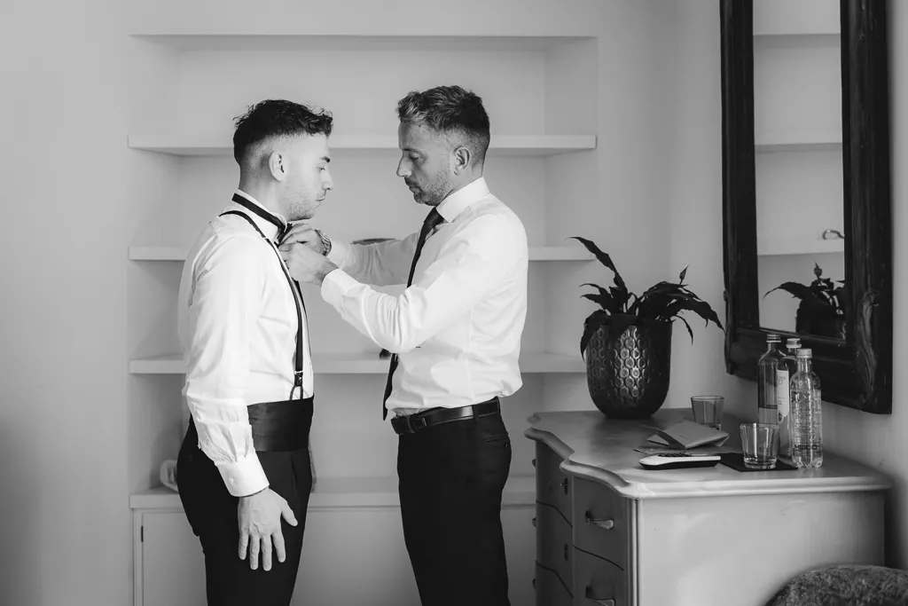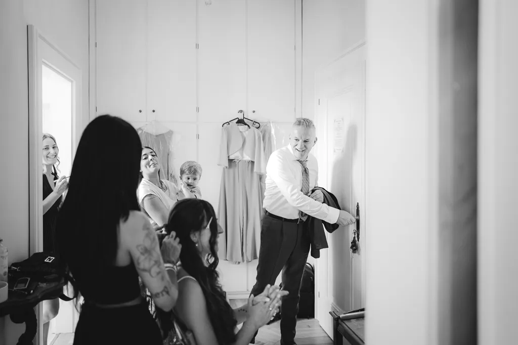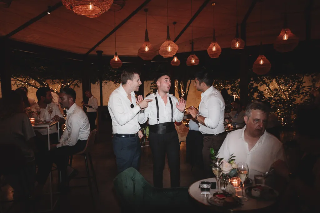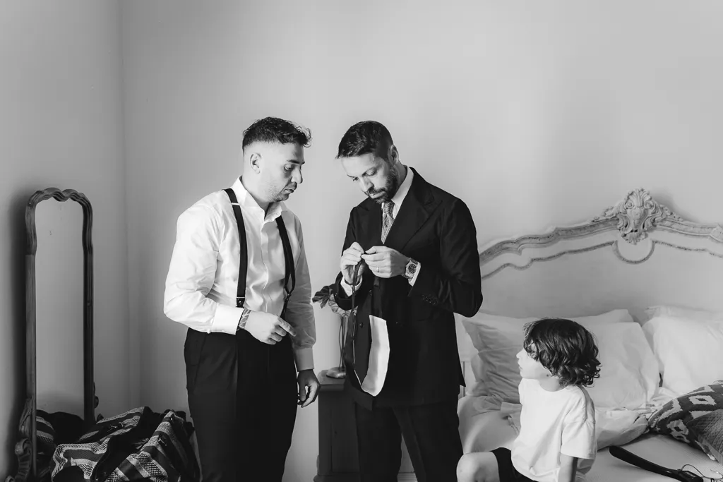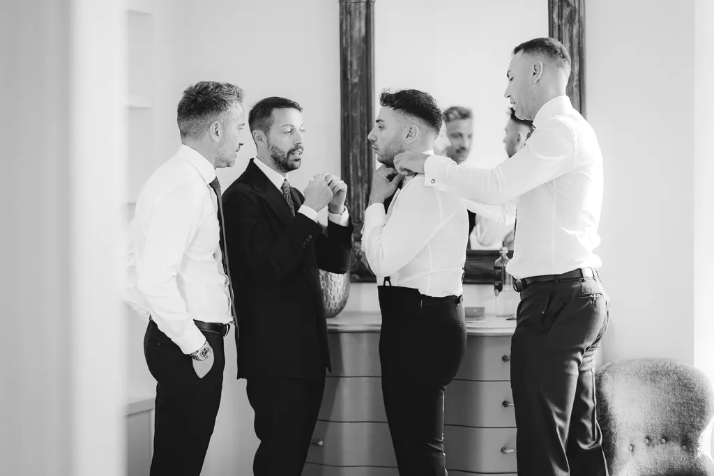sposo che scherza con amici prima dei balli