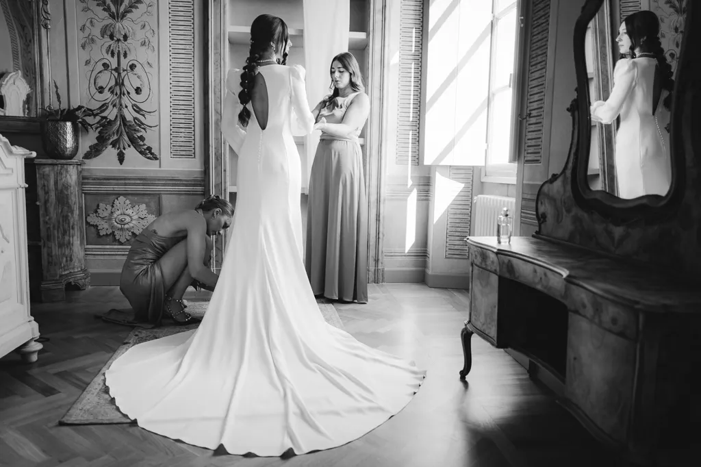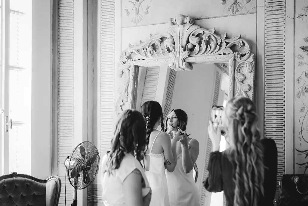 Un momento di complicità e gioia tra la sposa e le sue amiche a Palazzo Gambara, immortalato da Giorgio Baruffi.