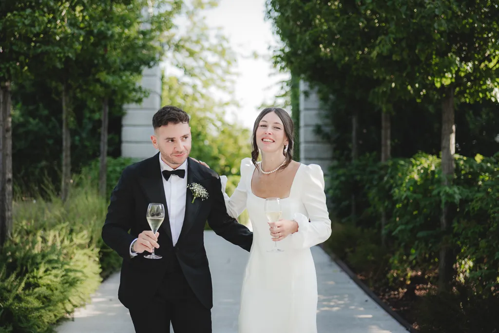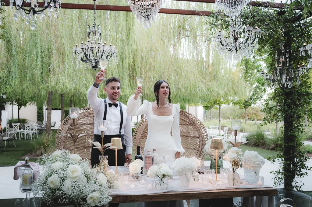sposi che brindano con i calici alzati