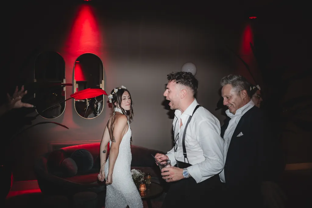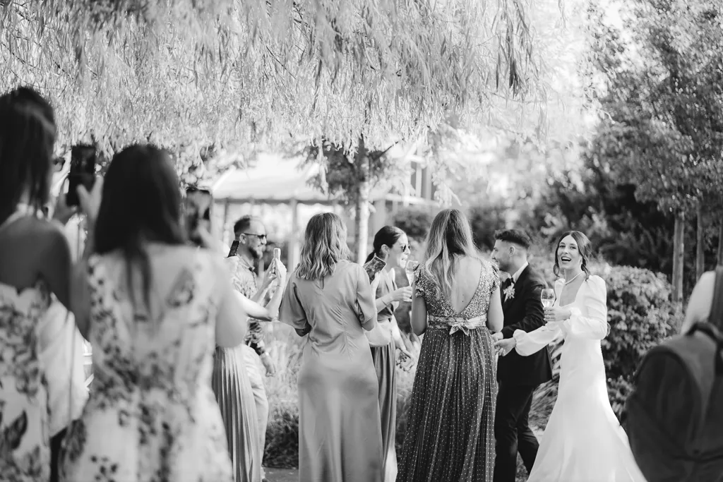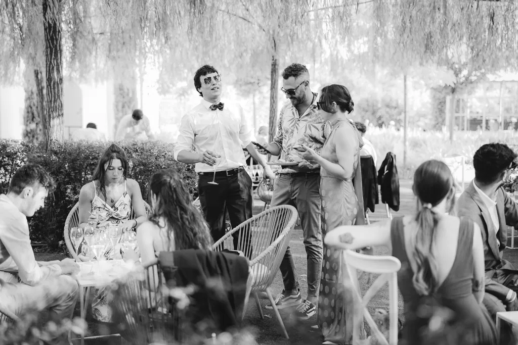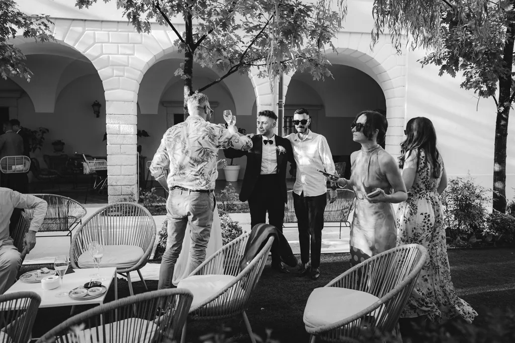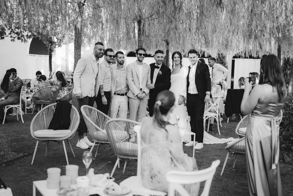 sposo e sposa, amici e coktails