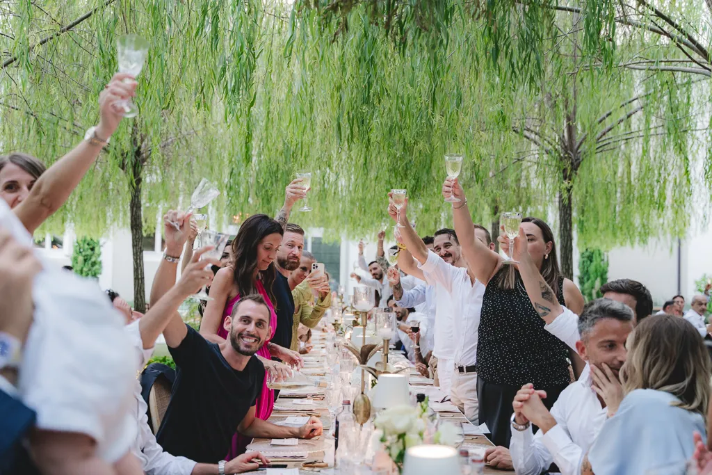 gli invitati brindano con gi sposi