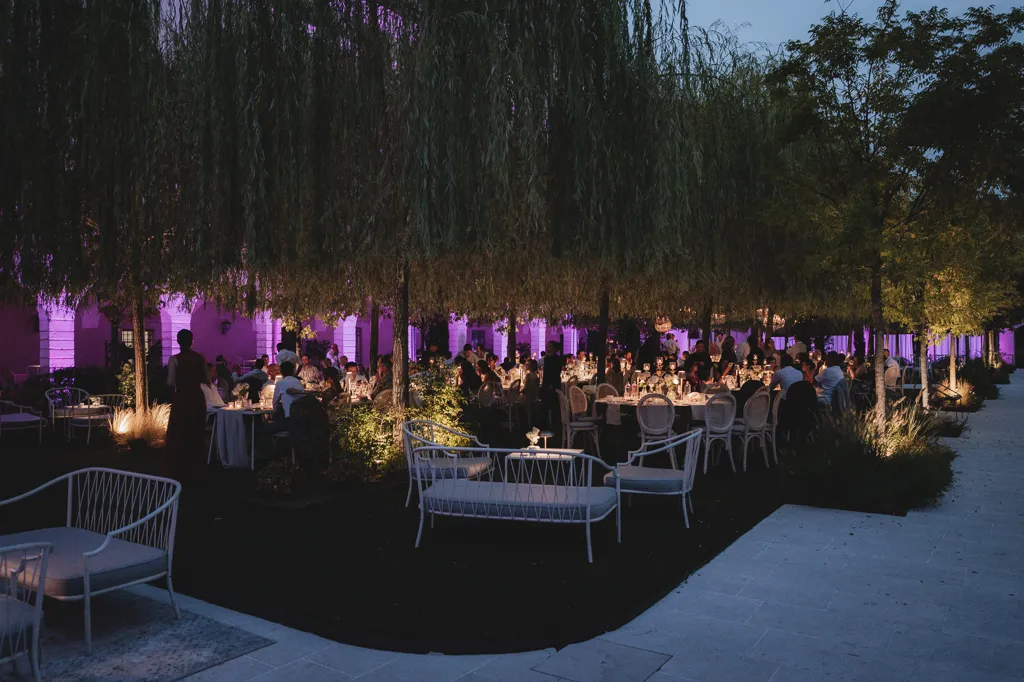 La cena sotto il cielo stellato o nell’elegante Sala delle Colonne, il Gazebo illuminato da luci soffuse e dettagli art déco, il taglio della torta sotto una profumata cornice di gelsomini… tutto è pensato per rendere questo giorno unico.