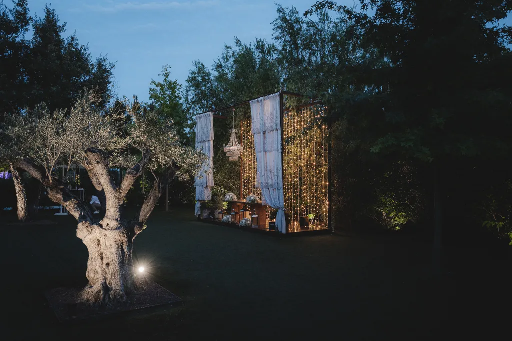 E’ presente un parco che è un piccolo paradiso, un angolo fiabesco dove fiori e arbusti avvolgeranno ogni momento della serata. I profumi inebrianti e gli scorci incantevoli di questa oasi verde renderanno ogni istante speciale.